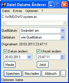Na endlich! Ein Tool, das keiner brauchen sollte und doch jeder haben will: Mit dem Datei-Datums-Änderer (DDA) können Sie nach Belieben das Änderungsdatum und weitere Zeitstempel Ihrer Dateien und Verzeichnisse ändern, anpassen, exportieren und vieles mehr! Und Sie brauchen dafür noch nicht einmal einen Pfennig zu bezahlen, denn der Datei-Datums-Änderer ist freie Software! Öffnen Sie eine beliebige Datei, ändern Sie das Datum, und speichern Sie sie wieder. Fertig. Des weiteren merkt sich der Datei-Datums-Änderer ab Version 1.1 auf